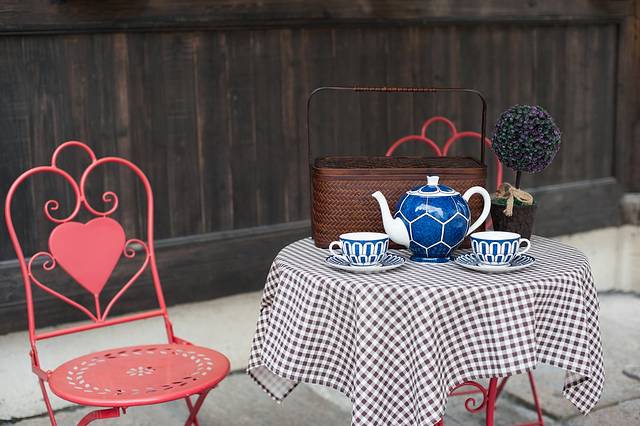 街道两旁有很多类似的桌面,累了渴了,都可以坐上去喝上一杯茶水,不知道篮子里有没有美味佳肴~~~