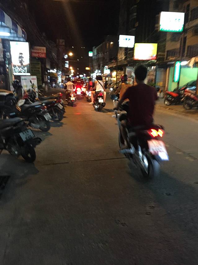 坐上码头送酒店的车,在下班高峰期走了近2个小时,到了酒店,整理了一下行李,按照导航按顺序游览了江西冷(排第一位,因为22点结束营业)-芭东酒吧街-芭东沙滩-芭东小吃街(不长的一条街,感觉最好吃的就是菠萝了。。。)-酒店。