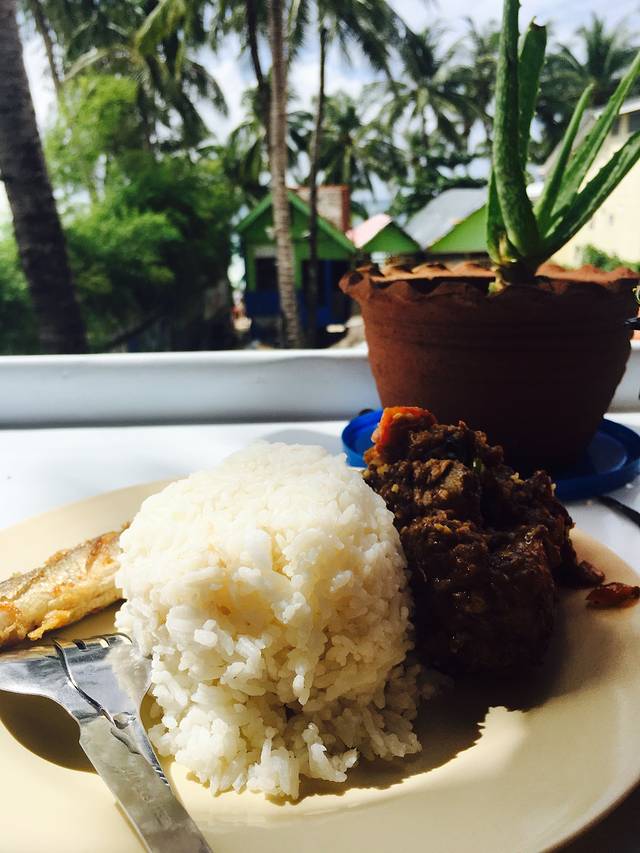 找到码头对面有一线吃的地方,我们点了当地特色的炸鸡饭,也许是饿啦,感觉味道棒棒的