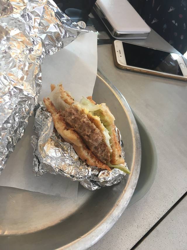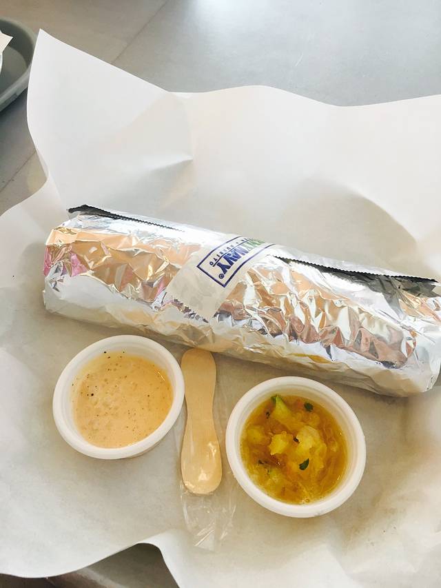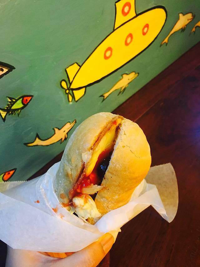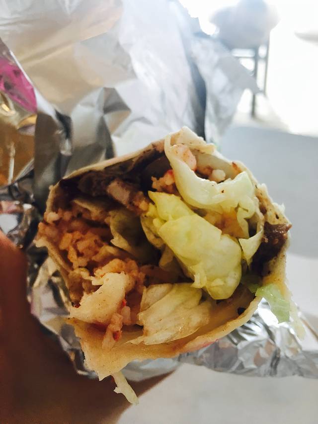 海滩边汉堡店买的,他们家的汉堡非常好吃,这个牛肉卷也不错哦,里面裹有米饭和牛肉