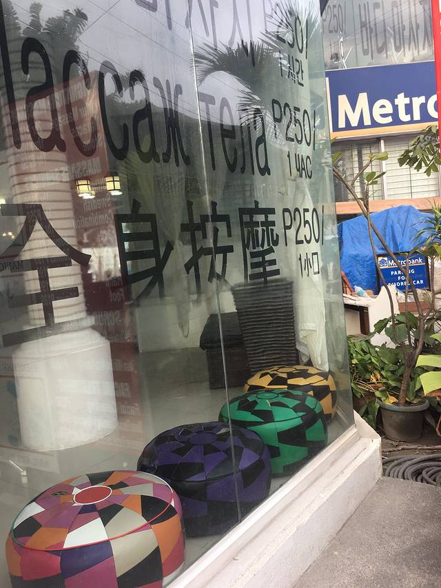 这个就在1号码头的对面,一个小时是250P,真的是从头按到脚趾头,让你可以全身都可以舒坦一下,只是你要记得带几十P做小费的哦,这个是你对按摩师的一个肯定啦,一般50P就差不多啦,在做马杀鸡之前会要你填写一个表格,就是描述你的一个大概身体状况,便于按摩师的了解。