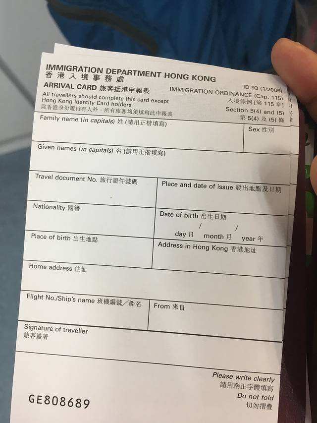 因为我们是凭护照出入境的,所以需要填写此表格,不然就无法通行哦