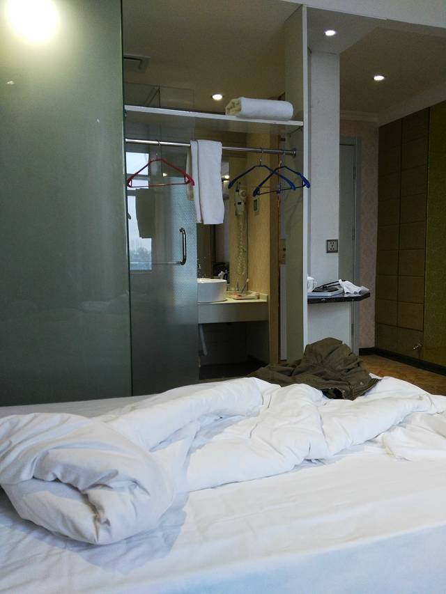 上了老板来接机的车,没会儿了,老板说宾馆没电了,又送我们去了另一家宾馆。原本老板这家店是网上挑有免费接机服务里评价比较好的,可订了价廉的私人宾馆,问题就来了。幸好,老板给我们转订的酒店虽然离机场也很近,不过还算干净清静,就是热水太冷了。照老板的说法是,这酒店规格比他家的好,他自己还要贴钱。