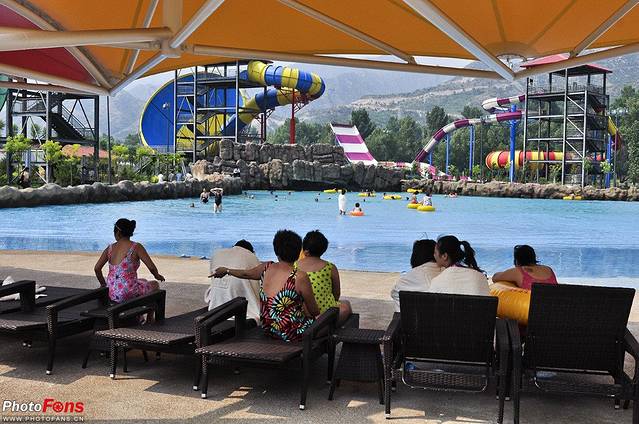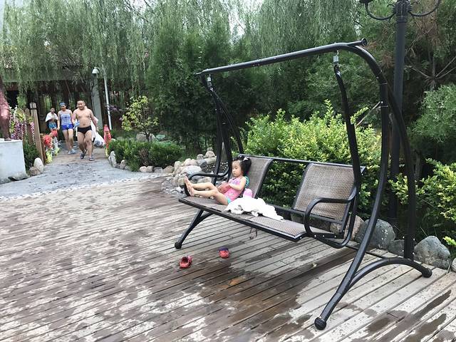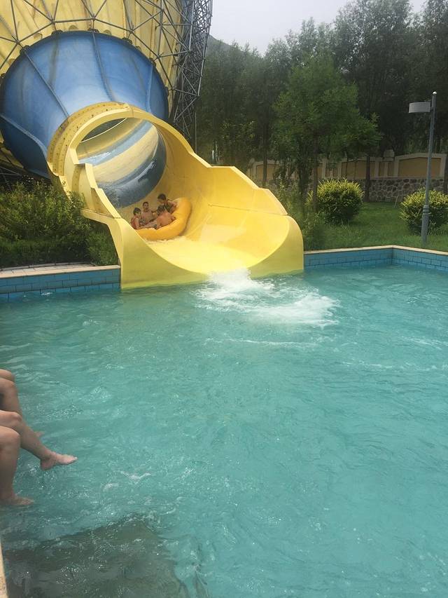 因为我们都去过大汖古村落了,而且孩子们很想玩水上乐园,怕 一下午时间不够,就不没有去大汖古村,直奔温泉度假村了。 到了大汖温泉度假村的时候才八点半,也就是说从阳泉走高速,从阳泉东上高速,梁家寨下高速,再到大汖温泉度假村一共用了一个小时。