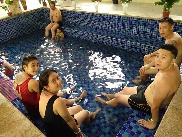 员工正在做操,等待开门等待检票的人已经不少了,我女儿不到1米2还可以免费。现在有水上乐园,不能单买温泉票,要买就是套票,还包括漂流。成年人258,儿童票是1.5—1.2的儿童,如果没有水上乐园的时候是78元,现在套票98。网上预订美团要190元,必须提前一天预定。没有儿童票预定。