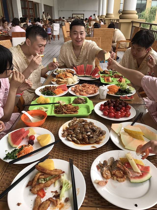 早上九点半就进了温泉因为来早了,没有准备好 水上乐园,我们就 先坐了漂流,每艘船最多坐4个人,我孩子太小 ,工作人员不让上 ,高血压也最好不要 坐,所以我们12个人就十个人可以坐船。我们分了三艘船,每艘上面有一个水性好 的。其实水性再好也不能掉以轻心,毕竟水火无情。每艘船有两个人划桨,大概漂了四十分钟,路上也算经历了九九八十一难,有被树叶划伤,有两次搁浅,大家用力晃动船体才离开,一路上看到了好多蝴蝶,青蛙,可惜不能让孩子们体验一把,当人处在湍急的河流中的时候,才能感觉到自己的无能为力,自己的渺小。这里劝诫14岁以下儿童不要参与,他们不知道深浅,如果不慎落水,那是很危险的。