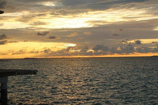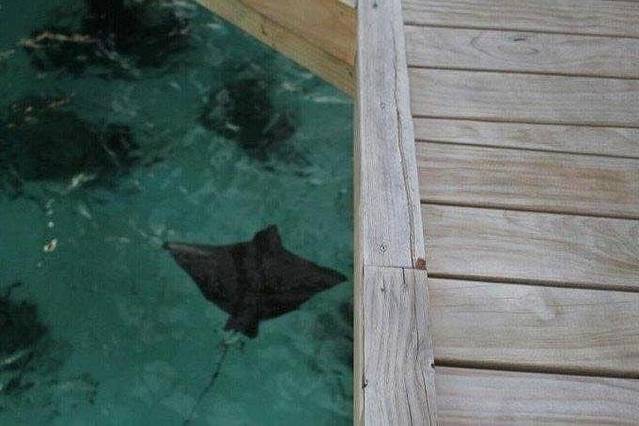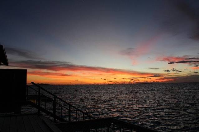 玩的东西就更加丰富了,水上摩托等项目,非常好玩、刺激,潜水是最有意思的,深入还底,能看到各种热带鱼,有种到了水族馆的感觉,除了这些,还可以和小黑们打打篮球,踢踢足球。马尔大夫跟北京有3个小时的时差,由于我们没有倒时差,每天早上还按照北京时间7点起床,而这边的时间是凌晨4点钟,还处于蒙蒙黑的状态,借此机会正好可以看一下马尔代夫的海上日出,景色绝对壮观。