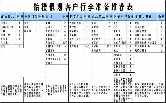 下面是苦瓜给的行李准备推荐表,还是很给力的哦!