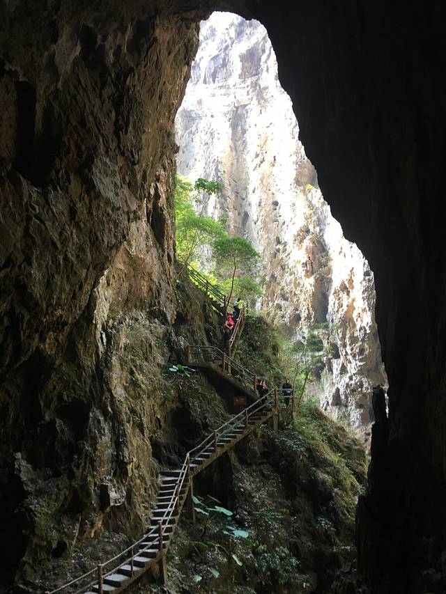 祈福洞。天坑内壁上的“仙人洞”,洞中隐藏了一个宝座,还有仙人二字悬于顶上。坐在仙人的位置可以看见对面如来佛的三根手指。第三根若隐若现,暗示我们不要太贪心许一个愿就好,事不过三...
