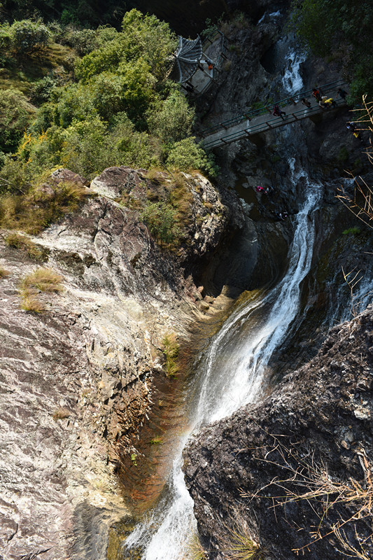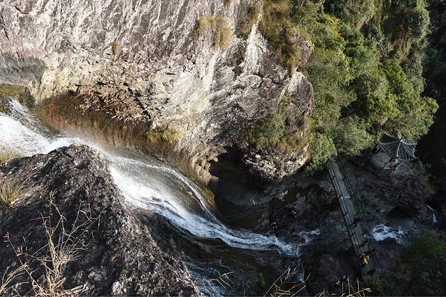 悬崖绝壁要数百洞峡最具奇观,峡长百米,岩高百米,与对面悬崖合成峡,与侧面瀑布震出雾。气温与外相比差10度。暑酷午餐人无汗。深入三洞景,蝙蝠成千上万,掷石惊飞黑压压。洞外急水白哗哗 。白水漈仰角100米以上,而上白尾漈高30米,上白源漈高60米,曲折迂回,百漈沟瀑布最高落差100米,急风急水落石出,奇景天成,四级直上400米,远观无踪,近听似雷声。