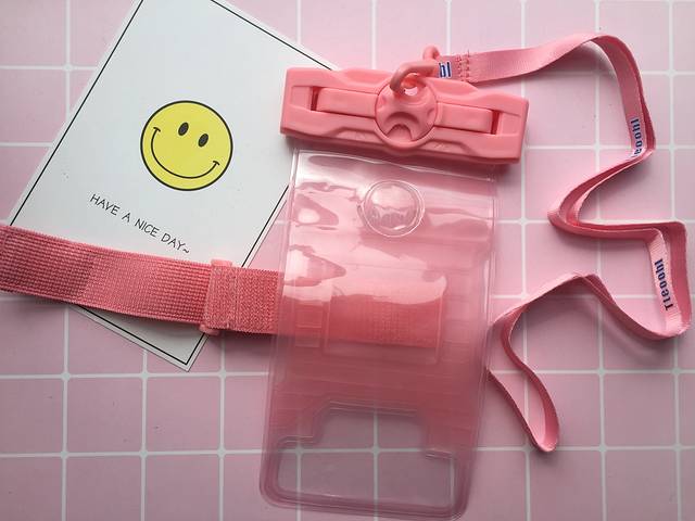 把手机装进里面封好,就可以带着手机安心下水了,整个泡在水里都没问题!而且设计得很好,隔着套子也能触屏操作,镜头无遮挡拍照无压力(但温泉里不能拍照哦~)。