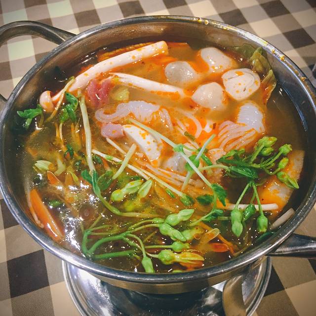 小火锅!自己选喜欢的食材带回座位慢慢煮,有辣和不辣两种汤底可选。