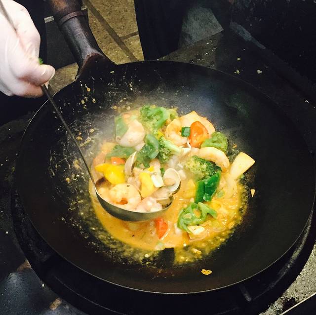 咖喱炒海鲜。看着就很诱人,虾虾超大只,很满足!不过有点点不是很入味。