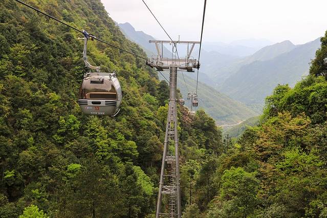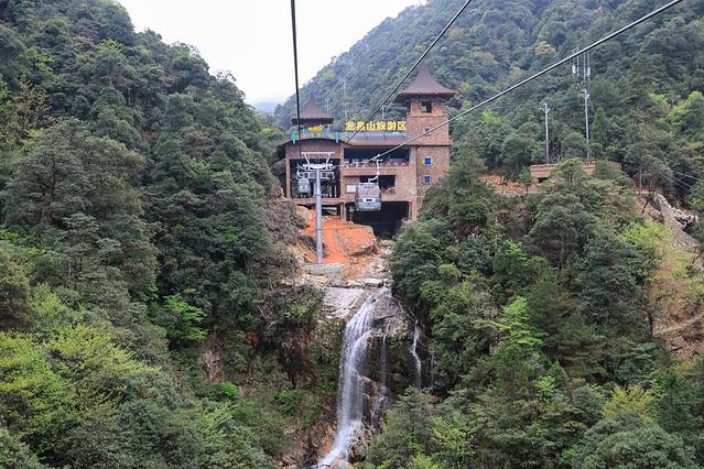 抵达龙山泉景区大门已经傍晚,恰逢这一天龙泉山索道开通,用七分钟的索道节省了一个半小时的上山盘山公路。索道全场有1929米,垂直落差800米,这是目前最先进的单线循环吊厢式索道,从空中看着脚下的青山绿水,一片片竹林与逐渐绽放的杜鹃,来到了半山腰上。