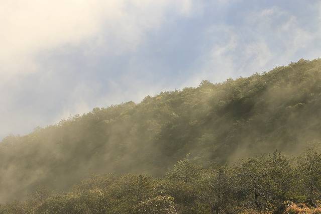 想着爬快些,早点到山顶拍拍星空,谁曾想大自然就是难以预料,抵达山顶,晨雾大气,只有零星几颗能见得着。幸得边上有一小屋,估摸着平日里是搭帐篷所用场所,可以遮风挡雨的屋子在此刻已经算非常好了。条件艰苦的时候总是更容易满足,嗯,此时,怀念山下房间里的床,想念温暖的感觉。