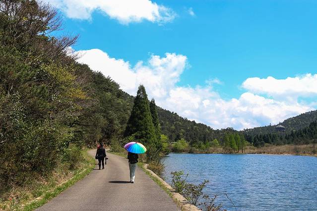 午饭过后,我们先从平缓的瓯江源开始,景交车停车的地儿走进去没多远,映入眼帘的便是小天池,对面是成片宝塔型的“塔衫林”,与湖水相映,一幅典型的高原湖泊画卷。