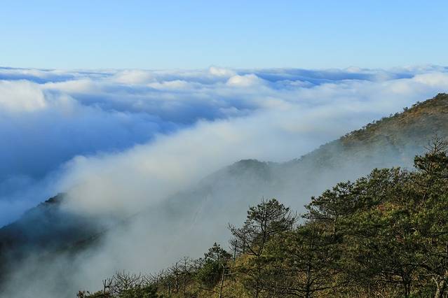 在我们面前出现的是一片片翻滚的云海,即便这会儿不算是太阳升起的最佳时间,可,原本已经抱有绝望的心感觉今儿个是扑了一场空,却在那一瞬间见到了最美的景,何等幸福。
