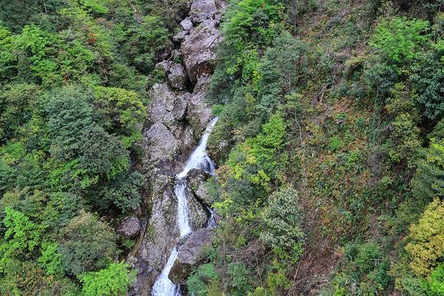 我们还在山顶,眼前还是一片绿野山林,而远处已经传来轰隆的水声,我想,二折瀑就快到了。