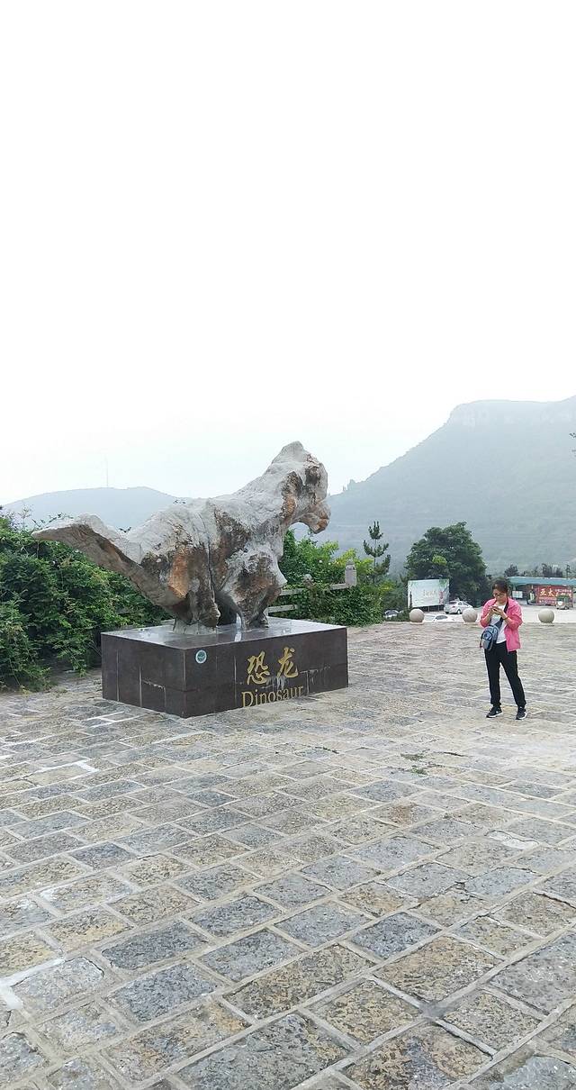 景区里地质博物馆门前的恐龙石