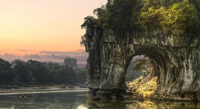 象鼻山山形酷似一头伸着鼻子汲饮漓水的巨象,是桂林的标志性景观之一