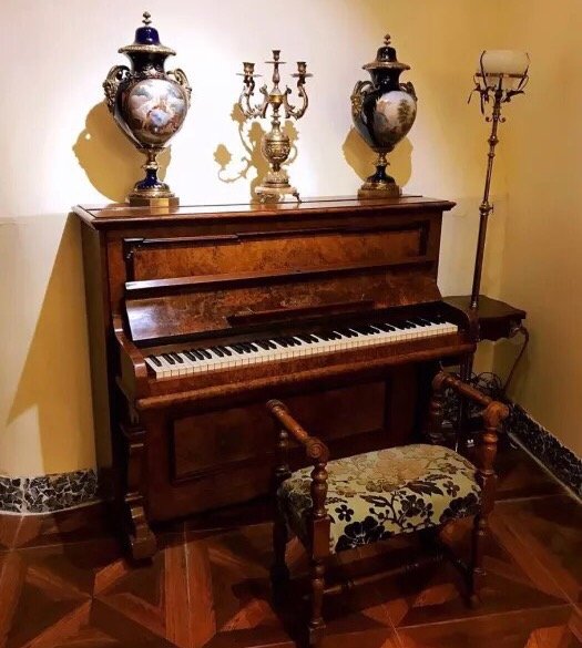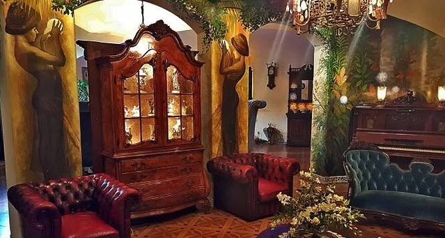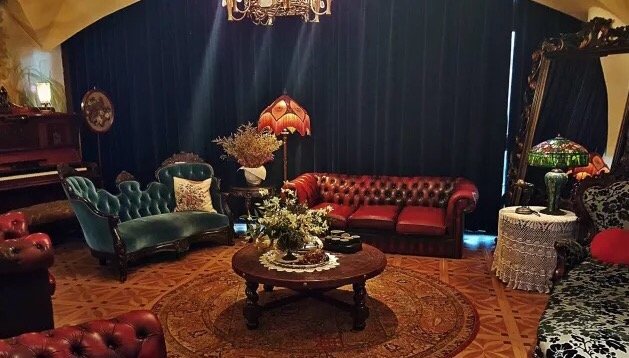 餐厅的艺术风格还展现在配饰的旧家具、老式汽车、钢琴等衬托里,而在餐桌中央放置着各色的花束有玫瑰、牡丹、康乃馨等,芬芳的香气蔓延在富丽雅致的空间里,处处蔓延着高贵。