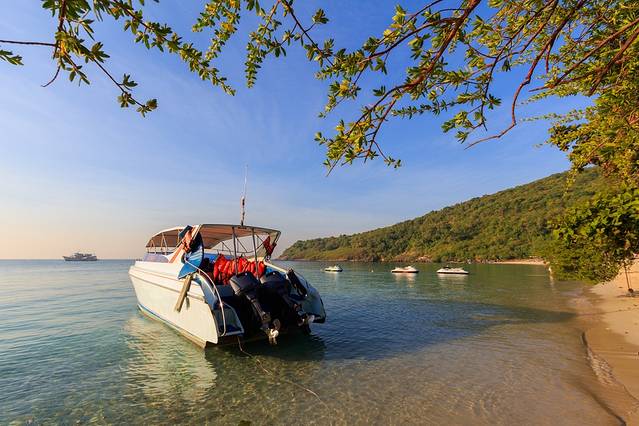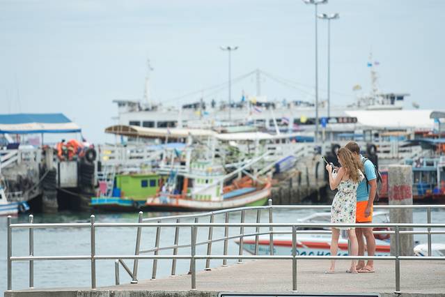 坐了30分钟左右就到格兰岛。如果想节省时间或需要私人出行,就可以坐快艇。每人40块,在10分钟内到达。因为我不着急。所以我选择乘坐客轮,泰国客轮挺大的。