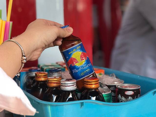 这是我第一次在外国岛上旅行,一下车我和朋友就买了巴厘海码头的票,价格6块左右。等候之间,我和朋友们买了红牛来喝。我前不久刚知道红牛起源于泰国。泰语叫Kra ting daeng,味道和中国不一样,泰国味道比较浓,价格只2元而已......等了一会儿船就来。