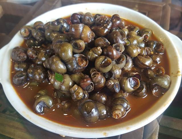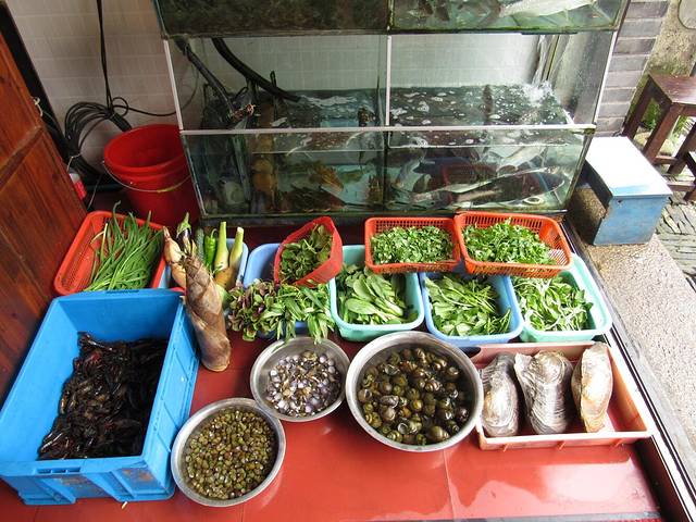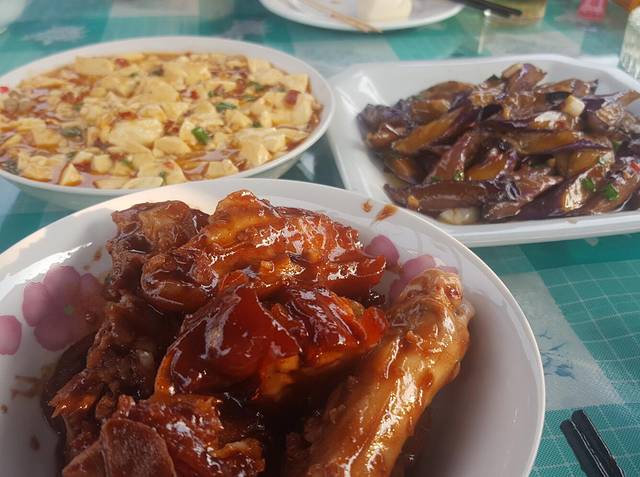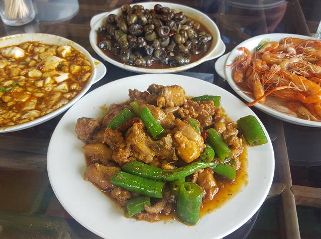 除了炒螺这道前菜外,我们又点了:炒河虾、素炒时蔬、麻辣豆腐、尖椒炒肉和一大盆米饭,喝了两壶免费茶水后,离开餐厅继续今天的旅程。