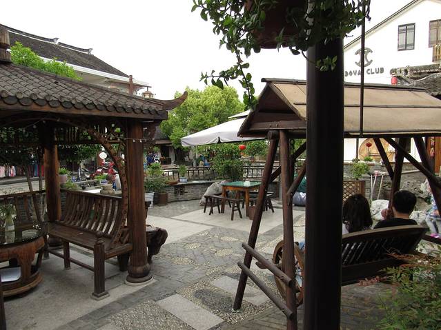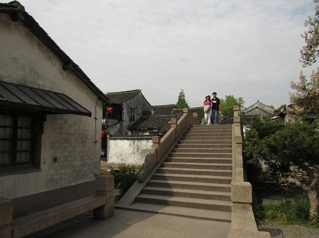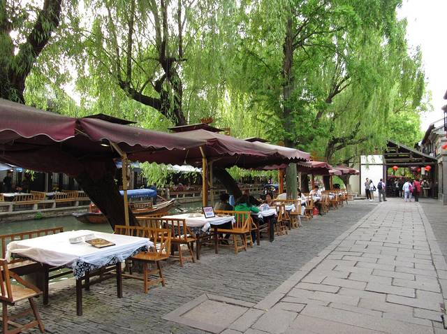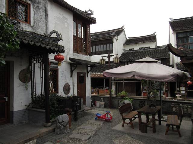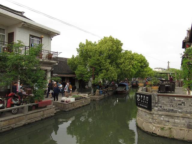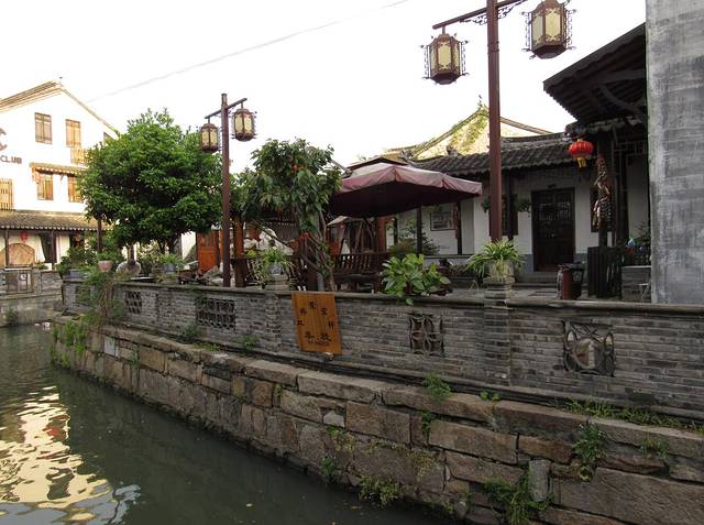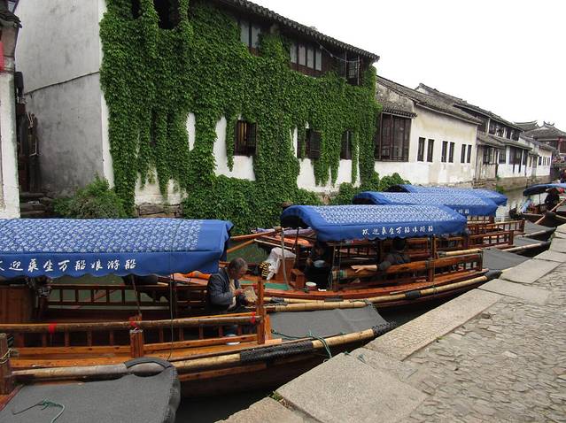 这个区域是后建的,并不属于周庄文化之内,生意萧条的远不及摇橹船。