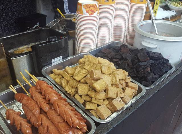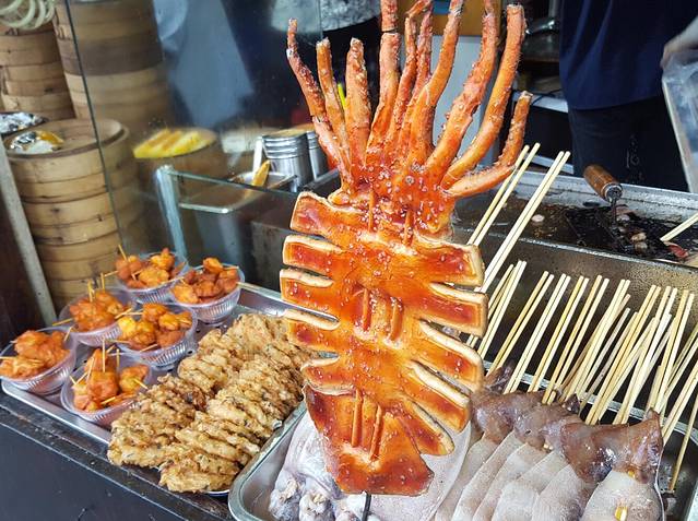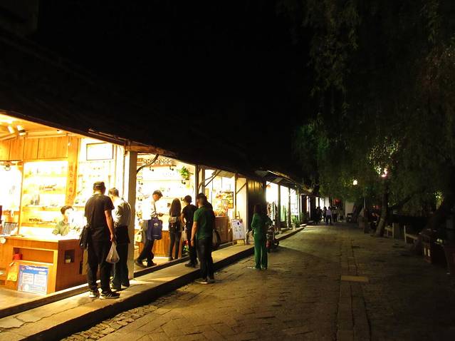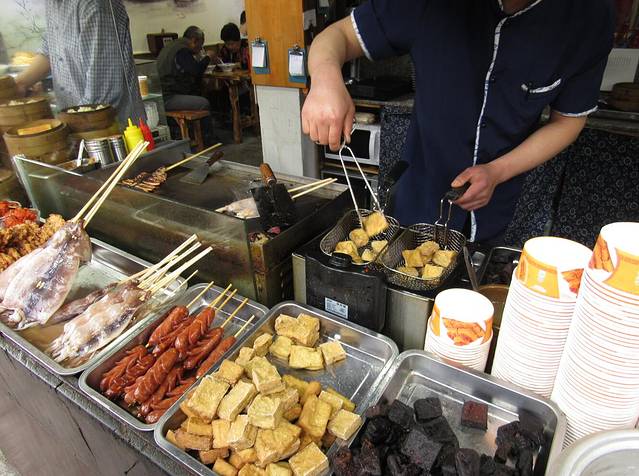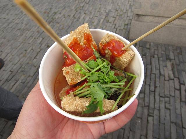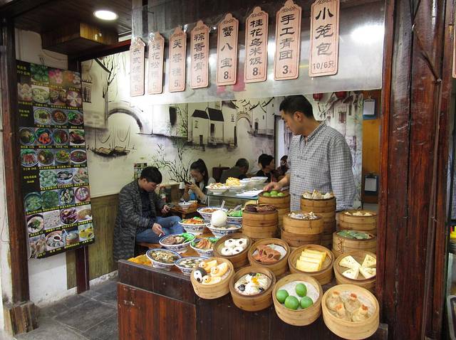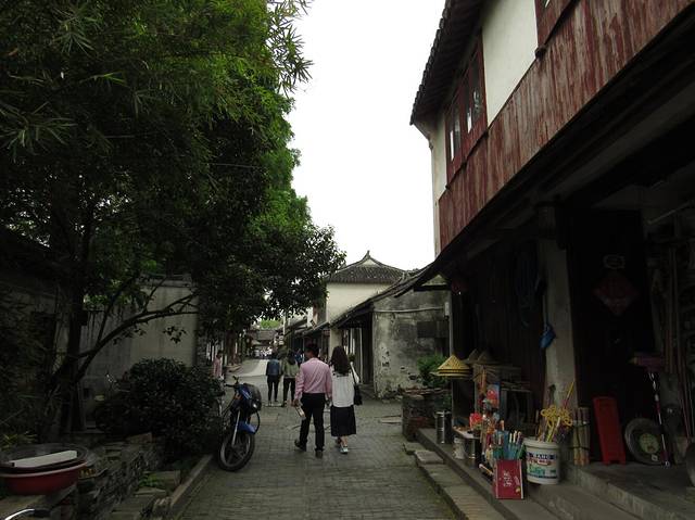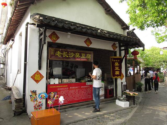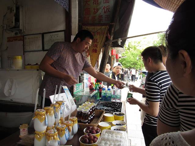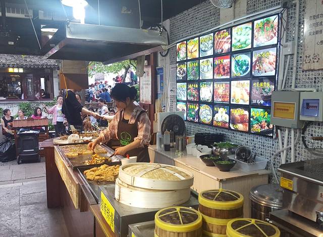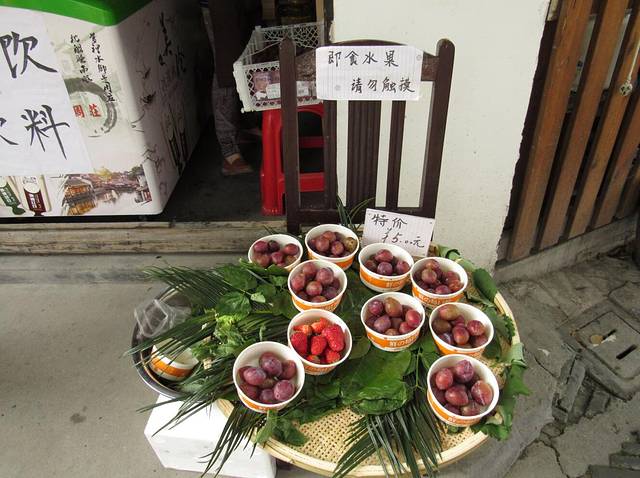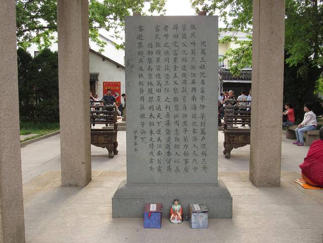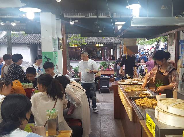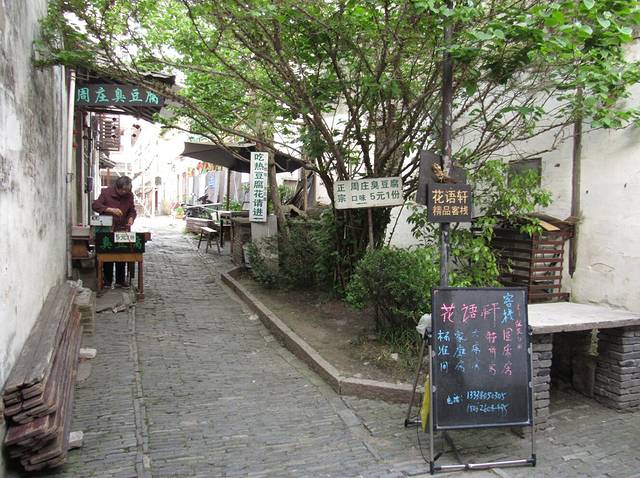 古镇通往沈万三墓碑的小路上,聚集着各种小吃,小贩们在此推销本地特产及四海美食。