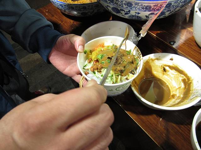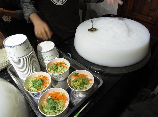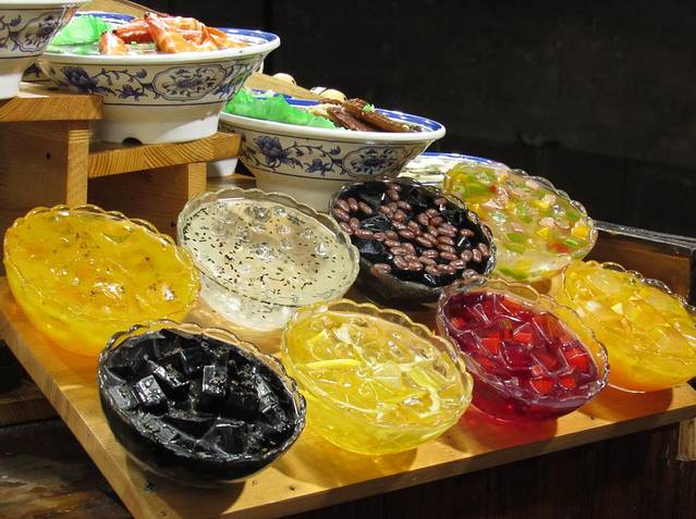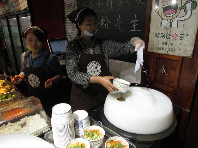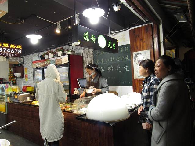 古镇夜市晚上22点就陆续关门了,双桥附近最晚营业至23点,这家卖凉粉的店就在我居住的客栈隔壁50米处,内厅售卖各色小吃几十种,店铺入口处的招牌美食是凉粉先生。