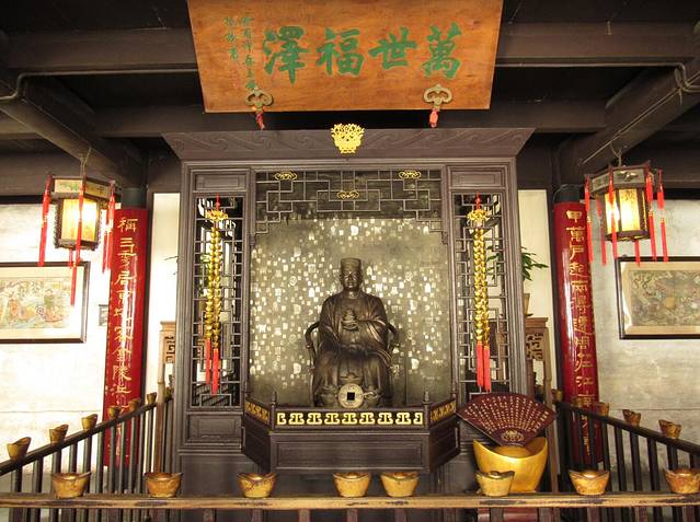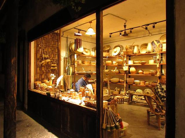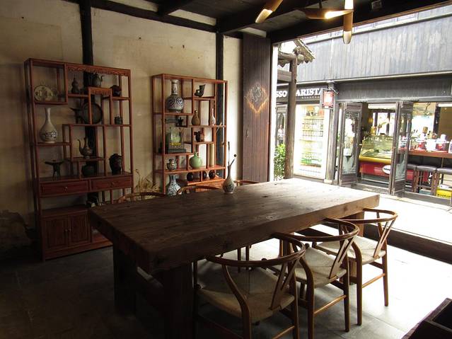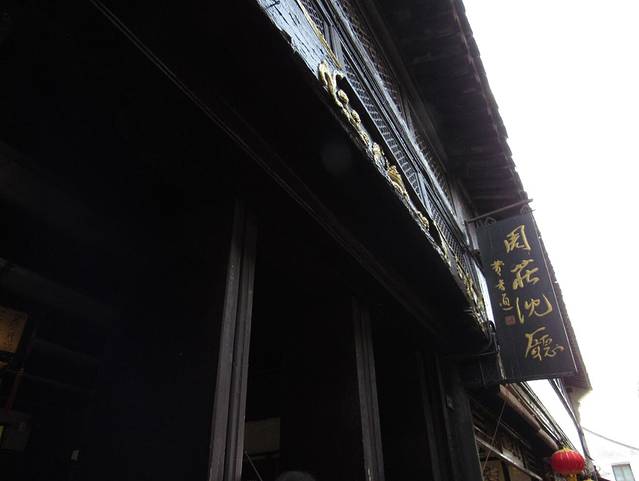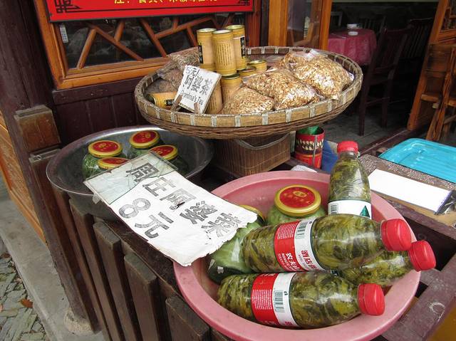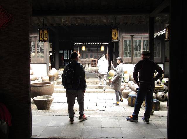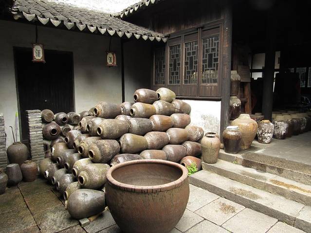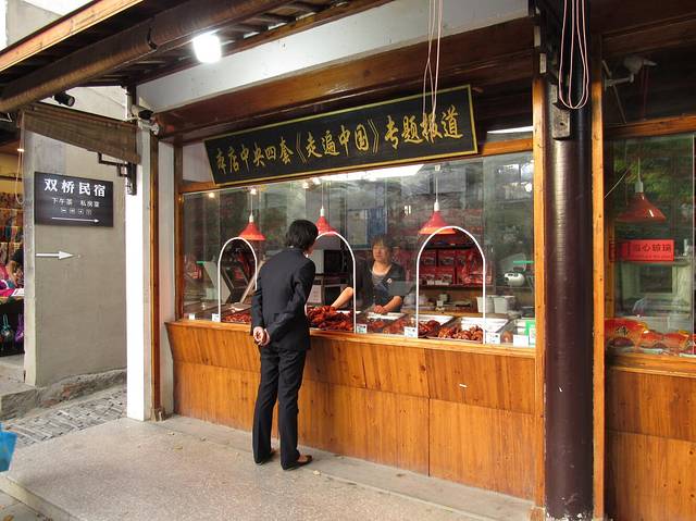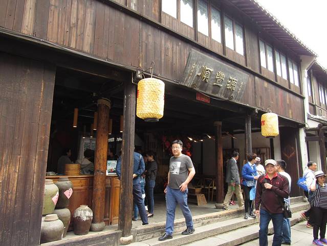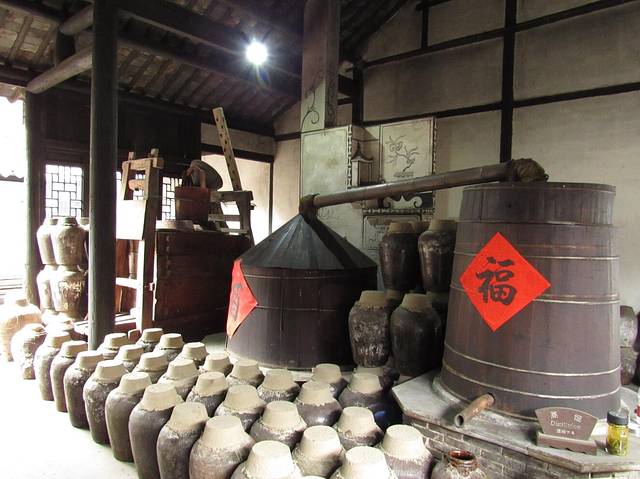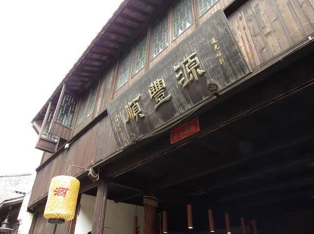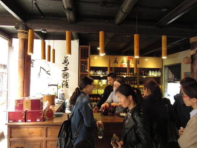 每个古镇都有专门售卖当地土产的店家,这家酒坊的特色是万三黄酒,台面后是酒坊博物馆。