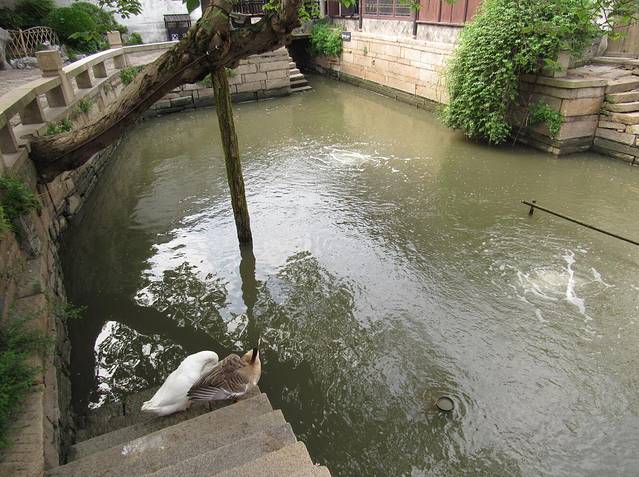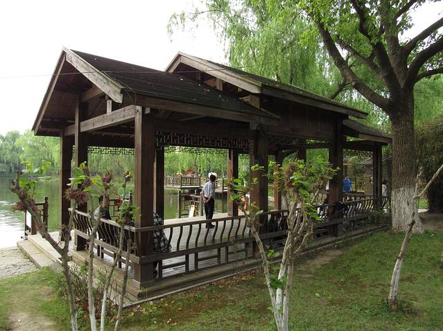 箸泾中段拓一丈见方水池,即是船儿交会和调头的地方,四周由花岗石驳岸护卫。驳岸上是临河人家的后窗,设有—排敞窗,窗前有吴王靠,也叫美人靠,一种木棱式拉杆。