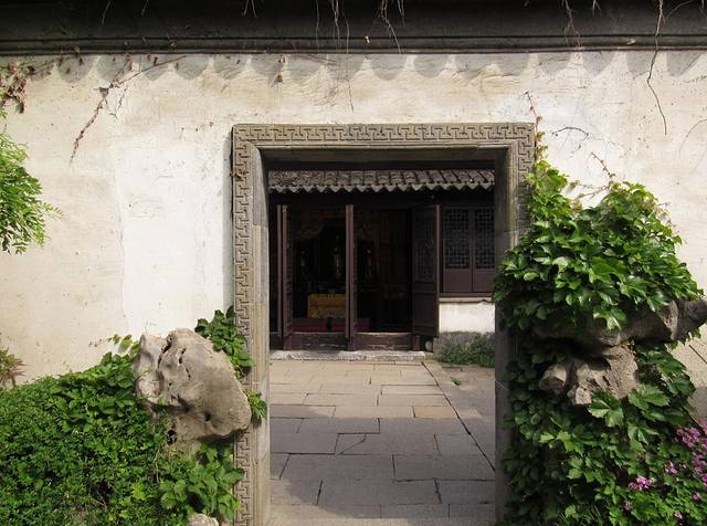张厅的后院,是—个闲静素洁的小花园,四周围拥着粉墙黛瓦的民居。高高的风火墙下,翠竹摇曳,月季吐艳,书带草点缀着曲径,它为这个小巧的花园增添了几分灵秀之气。