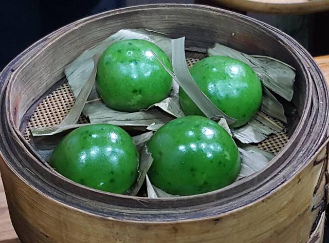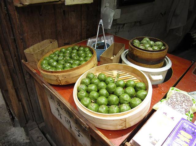 青团是江南地区的传统特色小吃,青色,用艾草的汁拌进糯米粉里,再包裹进豆沙馅儿或者莲蓉,不甜不腻,带有清淡却悠长的青草香气。
