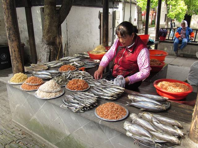 离开酒坊,我们经过了当地菜市场,这里售卖一些干货、鲜鱼、果蔬等日常品。