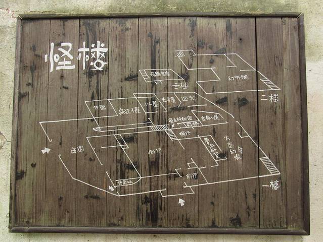 怪楼是经营方仿照三亚宋城千古情景区的吃惊房屋建造的,除了倾倒的陈设外还增加了不少触动击发的机关,令人仿佛身处幽冥之中的鬼房子。