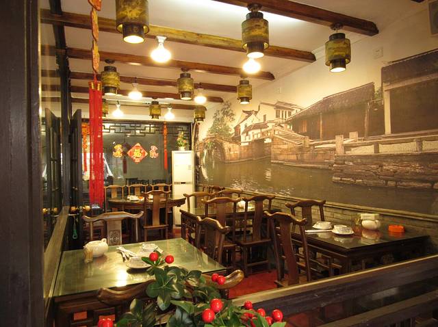 这家餐厅位于迷楼景区的后面,虽地处偏僻但依靠着景区在饭点还是会排起大队,我在离开迷楼的时候下起了小雨,便坐在餐厅二层品茶,十点三十分左右二层陆续上了客人,我们便点了四菜一汤(汤指的是免费茶),在第一个小高峰结束后,我们穿过密密麻麻的人群离开了餐厅。