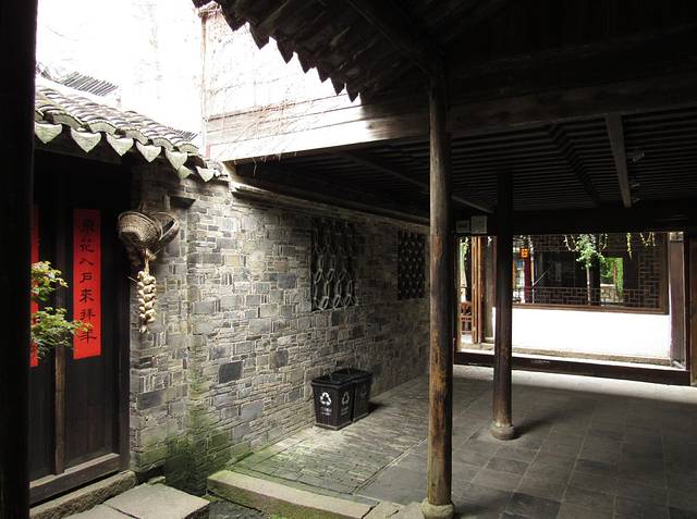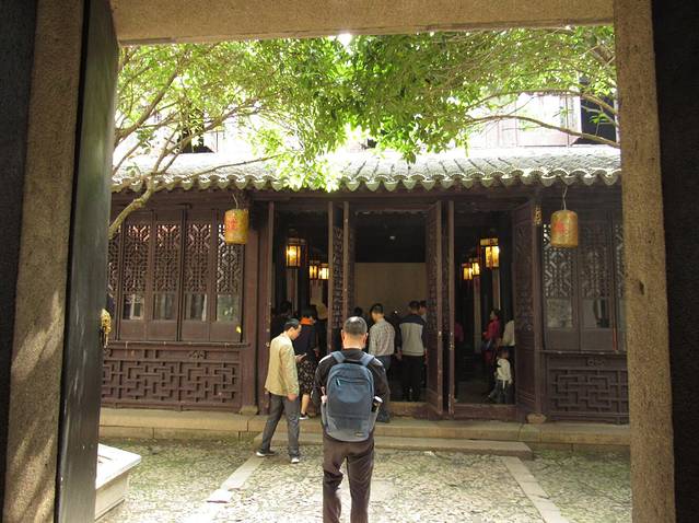后院角落里是处祠堂,里面供奉着神明,此处很是安静,厅外设有石头桌椅供游客们休息。
