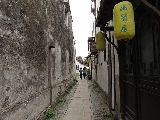 不得不说,这个靠接寺庙的方向应该是周庄最安静的区域之一,遍地挂起的渔网向人们诉说着这里曾经的渔业文化,附近的住宿属于雅致小居的类型,好静之人住在这里好似身处仙境一般。