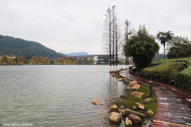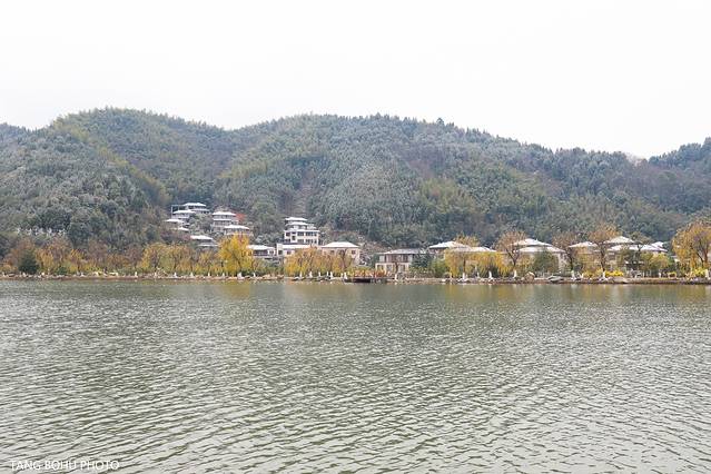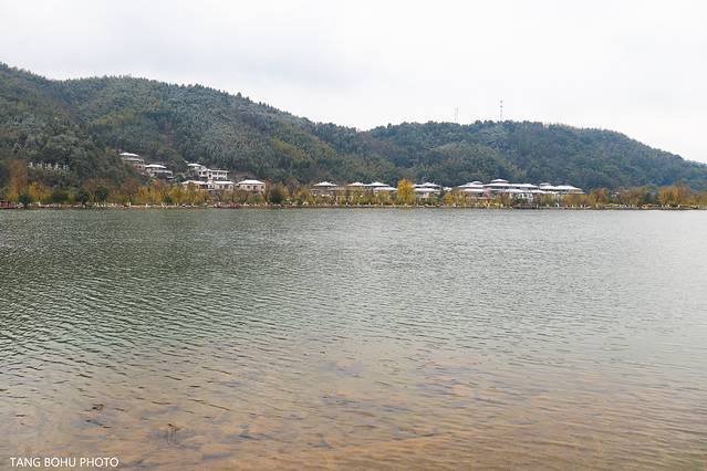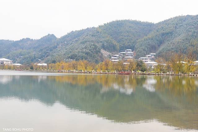 湖边的柳树叶子都变黄了,有的叶子落在湖中惊醒了在湖里面的鱼儿,寒风吹着湖中的水起了涟漪向远排开散去,吹到脸庞有些冰冷,走着走着,看看这里的风景感受不一样的冬天温汤镇景色。