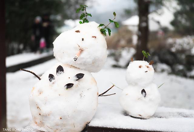 宜春第一场雪,明月山下大雪纷纷,遇到两个可爱的小雪人。