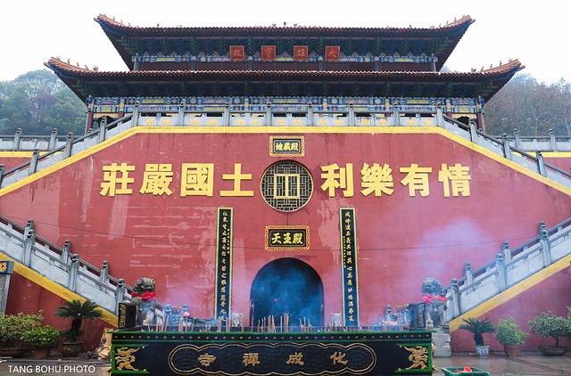 打车到化成禅寺七元左右,坐公交车不太方便,要转几次车,还是打车比较方便一些。化成禅寺的前身为两个佛寺的合成:上岩叫开化院,下岩叫惠昭院,距今已经有1200多年历史。