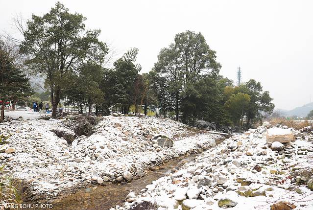 到处是白色的一片,小溪边的树,石头上都变成白色,来明月山又是幸运的,虽然没有到山顶上,但同样看到了雪景。