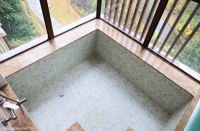 阳台设计成了一个巨大水池,在这里泡着温泉,一边看着书,听着音乐又是要多么惬意的事呀。在温汤镇各种酒店都是有温泉入户的,开出来的温泉水温度并不是很高,这可能跟小区的远近也有关吧,反证我住的这家温泉的水放到池里的温度不高,这里比较安静一些。唯一不好的是离到镇上的距离比较远,走路的话真的要差不多半小时左右,而且也没有公交车到达这里,公交车是在天沐温泉大门入口,离大门入口也是有一段距离走个20多分钟,如果你是自驾的话那么还是可以的。里面停车的地方很多。