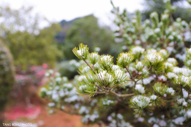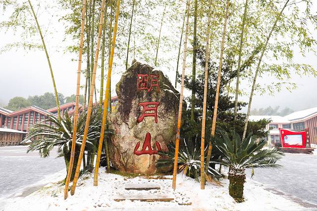 一路上看到很多自驾车前往明月山,听说才知道今天当地人免门票,难怪公交车上到处都挤满了人。当我到达明月山的时候,因下雪太大雪山路滑,能见度过低,不安全,于是景点提前关闭了,太遗憾了,本来想着到顶上去拍拍雪景的。现在可好了,封山了。不过当天雾气大,天空灰暗,能见度过低上去山顶也没法拍出好片呀。