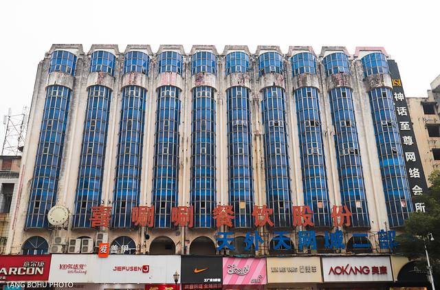 走到步行街尽头看见一栋建得比较早的建筑圆柱型的外观,看上去有年代感。