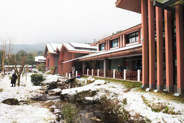 天沐温泉度假村里有很多泡温泉的地方,里面比较大依山而建,我走在天浴湖畔上,从远处望去,山上的树,别墅上都被一层白白的雪所覆盖着,白色一片片。