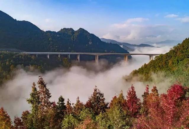 这里没有北方冬季的皑皑白雪,没有北国银装素裹般的耀眼银光,随着冬天的来临,它的四周反而增添了更多色彩,天地间宛如被打翻的调色盘,蓝天白云,绿叶红枫,色彩斑斓,美不胜收!它就是百靖高速公路,一条充满灵气的“中国——东盟国际大通道”。
