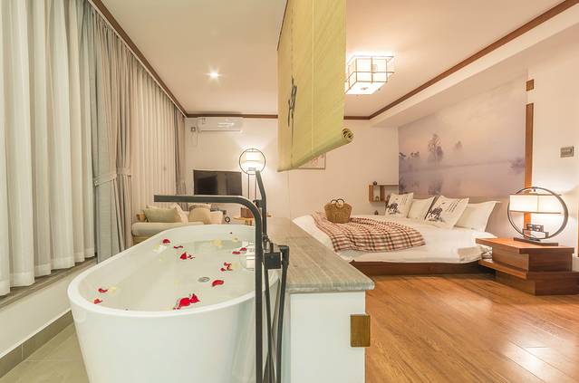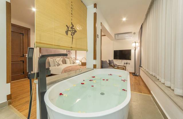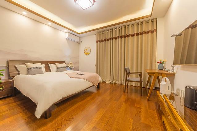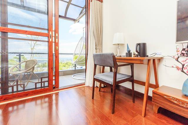 别墅二楼喝茶公共区域就可以看海!整栋别墅一共4间别致的大床房,一楼入户即是前院(有惊鹿水车,流水鱼池,孩子们最爱的秋千等),一楼有茶室、小书房、洗衣间、储物间、台式电脑及打印复印机等;二楼有客厅、麻将机、休闲喝茶区(可观洱海及蓝天白云)、厨房、餐厅等,从餐厅出去便是后院,有太阳椅,喝茶区,休闲躺椅、晒衣服挂架、奇花异草等;三楼靠山侧是自在山景房(多一个榻榻米,可观苍山,三大人入住首选),靠海侧是无念海景房(多一个露天阳台、吊篮及休闲茶椅,尽享洱海及蓝天白云);四楼靠海侧是观想海景房(全景落地窗,独享洱海及蓝天白云),四楼靠山侧是悠然山景房(全景落地窗,独享苍山及蓝天白云);顶楼露天露台观景效果极佳,360°无遮挡,苍山、洱海、蓝天白云尽可尽收眼底。闲暇时可约上亲朋好友在此相聚,或喝茶聊天、或发呆打盹,尽情享受度假的乐趣。